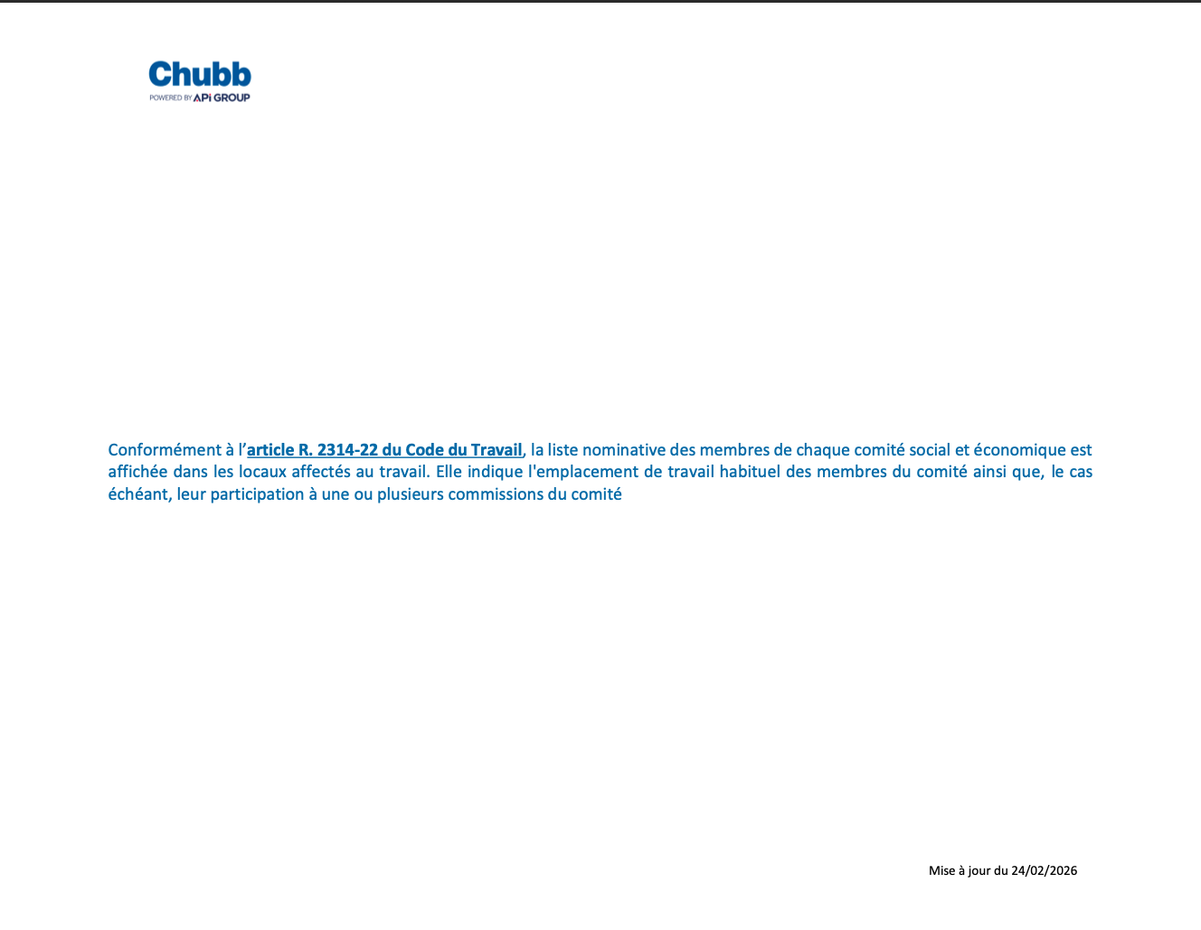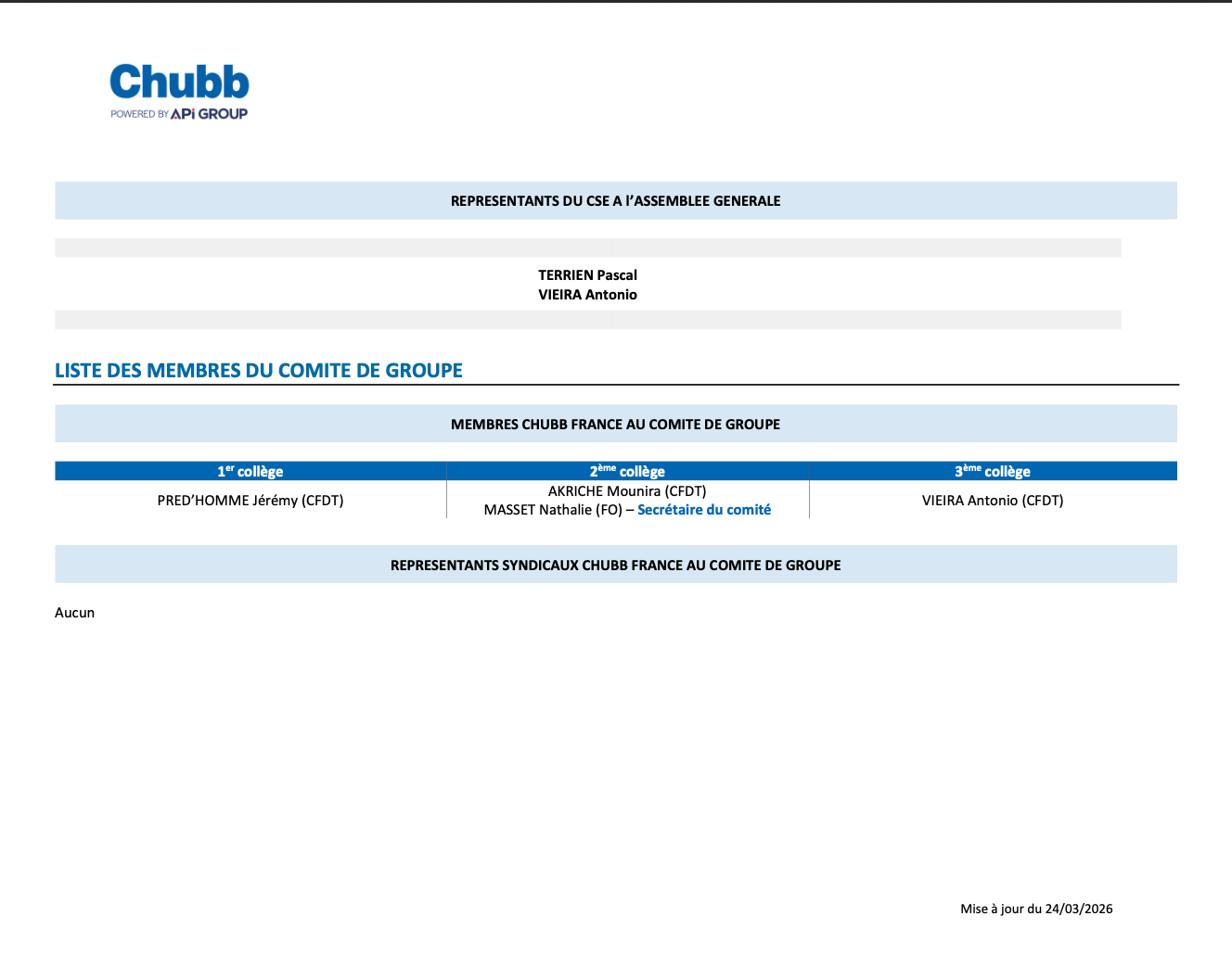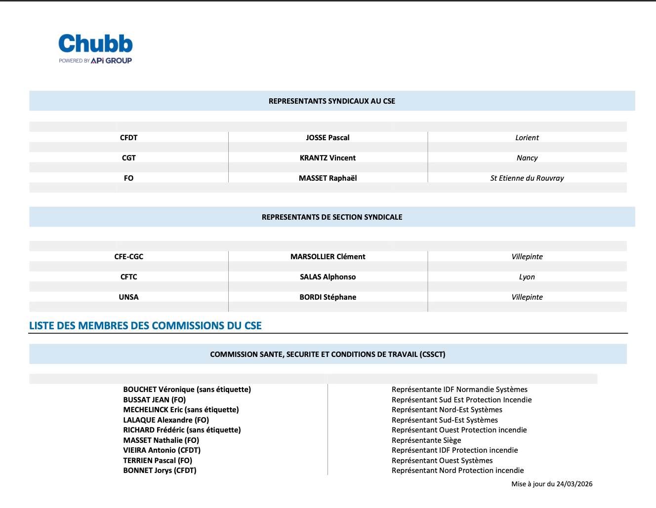 VOS INSTANCES REPRESENTATIVES DU PERSONNEL CHUBB FRANCE