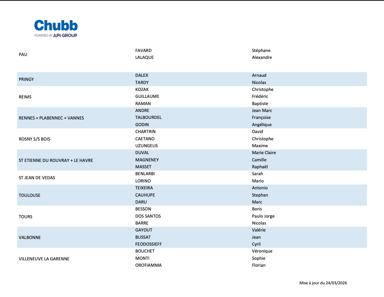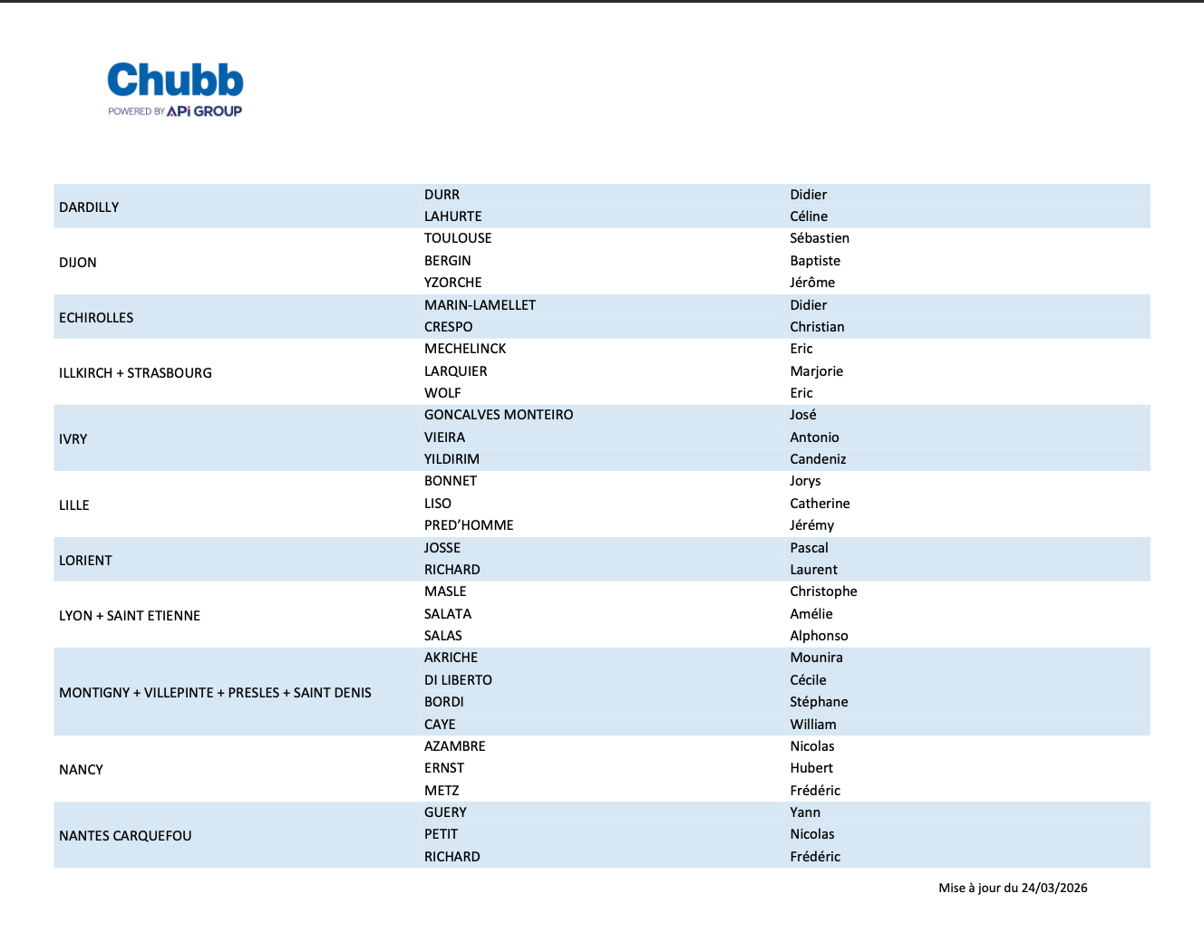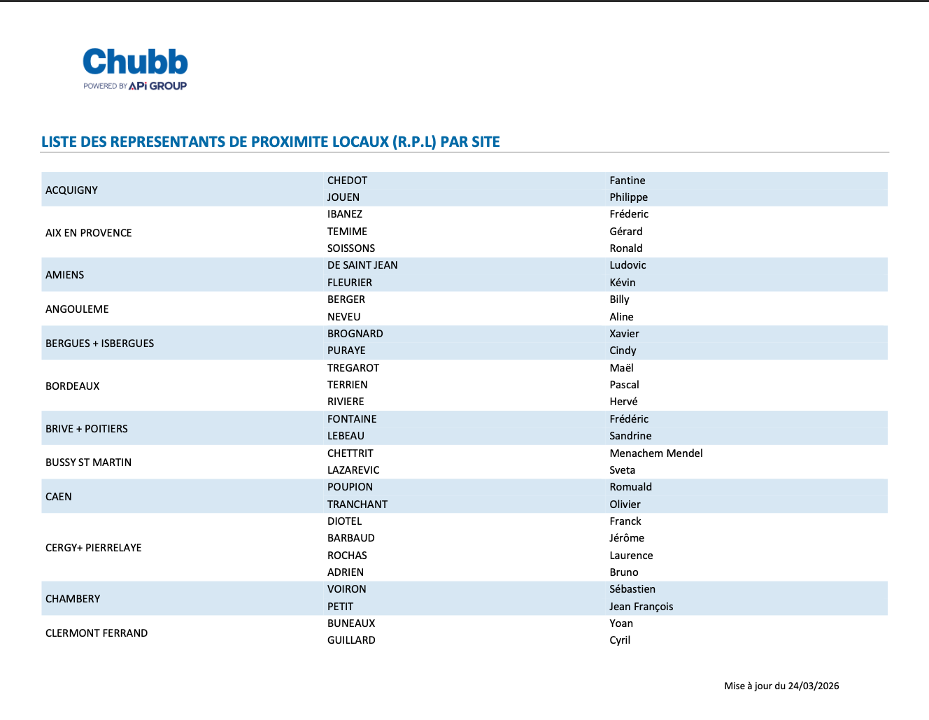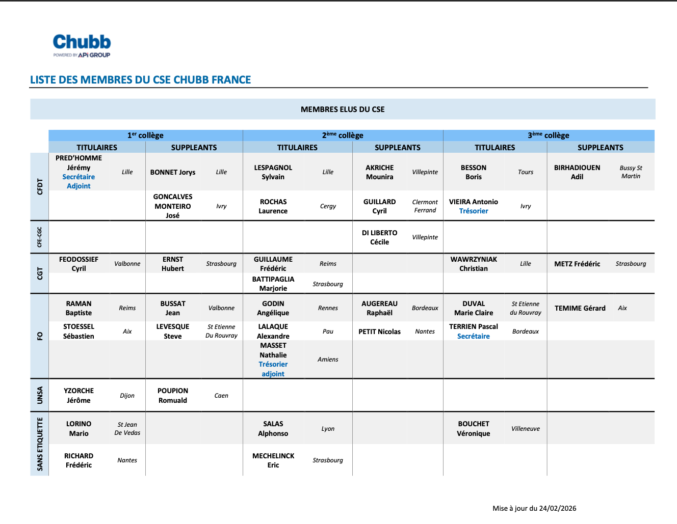 VOS INSTANCES REPRESENTATIVES DU PERSONNEL CHUBB FRANCE